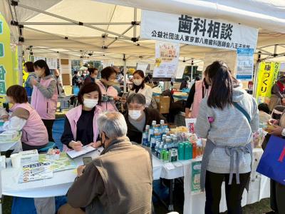 八南歯科医師会八王子支部のブースで、歯科衛生士は、「歯科衛生士のお口相談」「RDテスト」「OF-5」を、先生方は、歯科専売の口腔ケアグッズの販売を行いました。